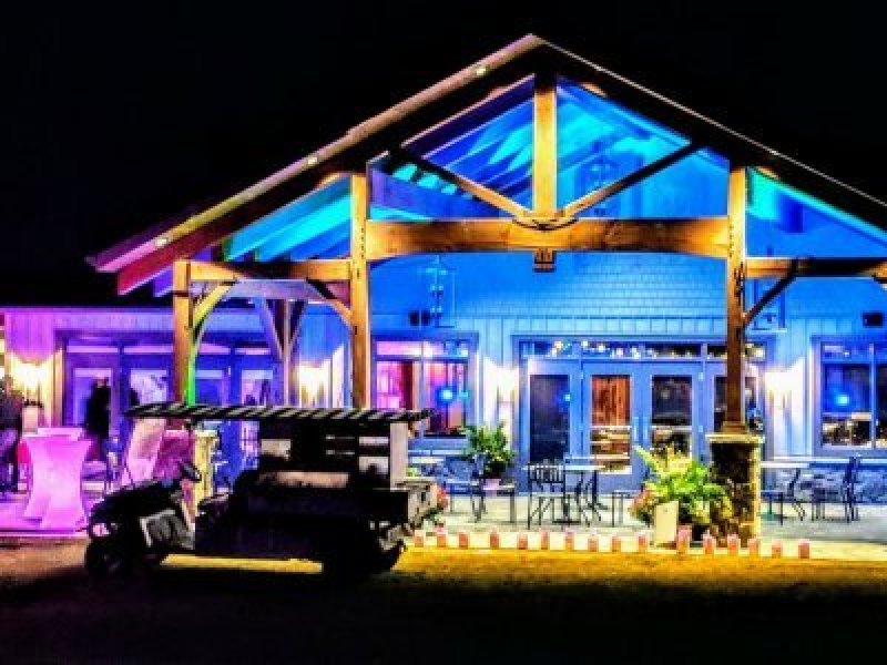 The covered patio will be lit in a rainbow of colours. There will be music, fun lit-up furniture and patio heaters to keep you cozy, plus a lit-up bar for pre-golf drinks!
