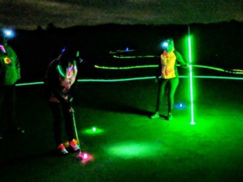 Includes: 9-Holes of Glow in the Dark Golf, Delicious Dinner and Golfer Package